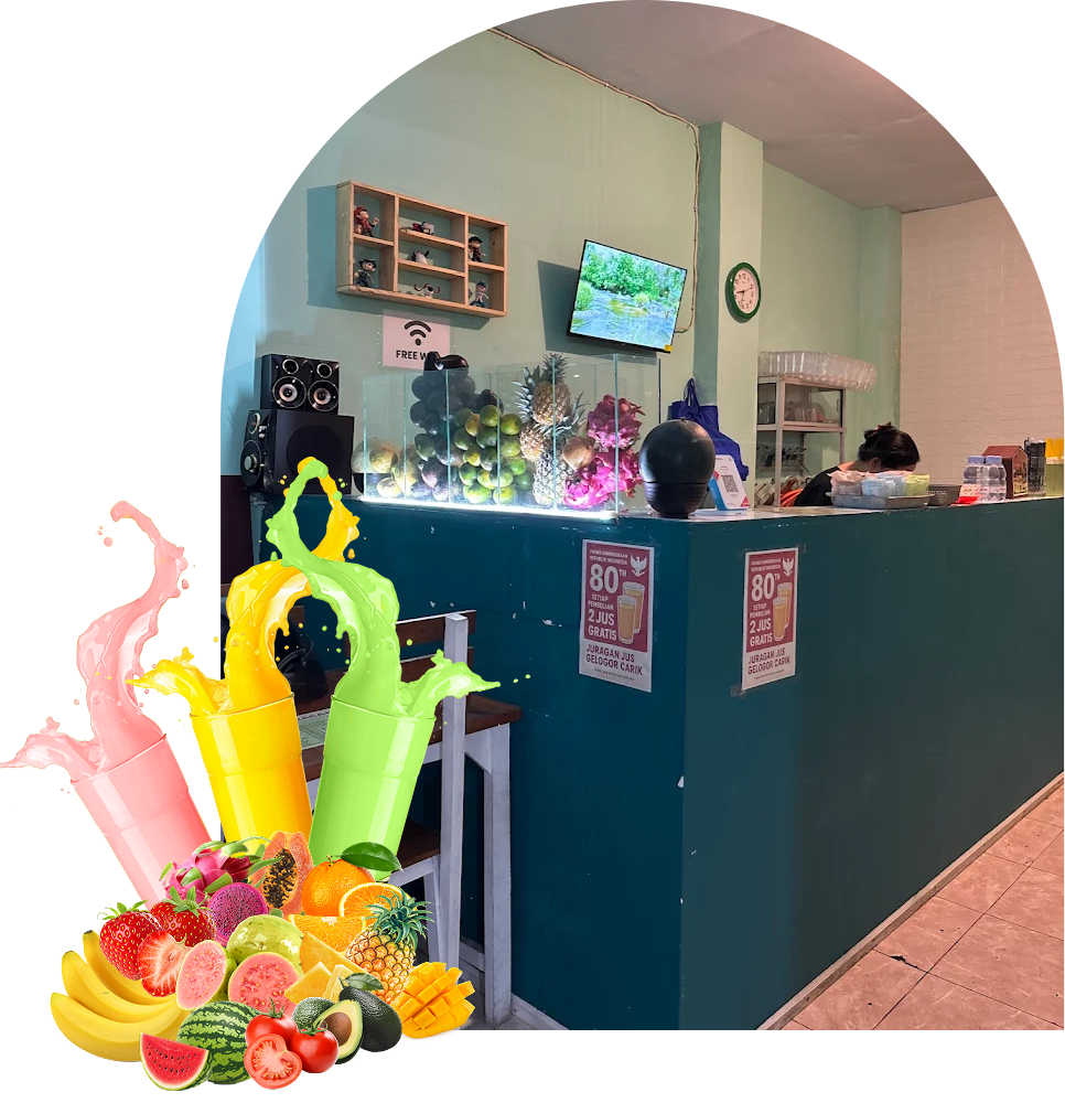 Di sini, kamu gak cuma minum jus atau makan kamu juga menikmati momen. Baik itu nongkrong bareng teman, istirahat sejenak dari rutinitas, atau sekadar cari yang segar-segar, kami siap nemenin kamu dengan senyum dan pelayanan terbaik.